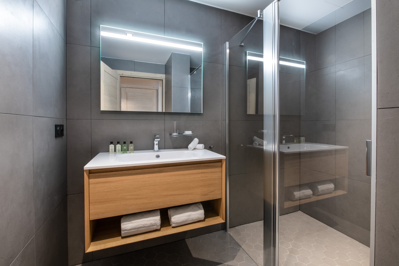 Le niveau inférieur est composé de deux chambres avec un lit double et deux salles de bains attenantes ainsi que d’une chambre cabine avec un lit superposé. Au niveau supérieur, vous trouverez une chambre avec un lit double et une salle de bains attenante ainsi que l'espace de vie avec un coin salon/télévision, un espace repas et une cuisine équipée. Vous pourrez profiter de la vue sur le front de neige de Moriond et la Saulire grâce au large balcon aménagé d’un bain à remous privatif.